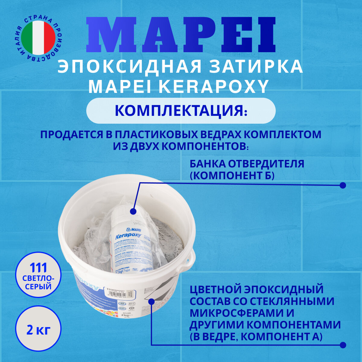 Ниже Вы можете прочитать отзывы на Эпоксидная затирка MAPEI Kerapoxy 111 Светло-серый , 2 кг, ознакомится с подробными характеристиками, посмотреть интересные обзоры и фотографии на Эпоксидная затирка MAPEI Kerapoxy 111 Светло-серый , 2 кг.