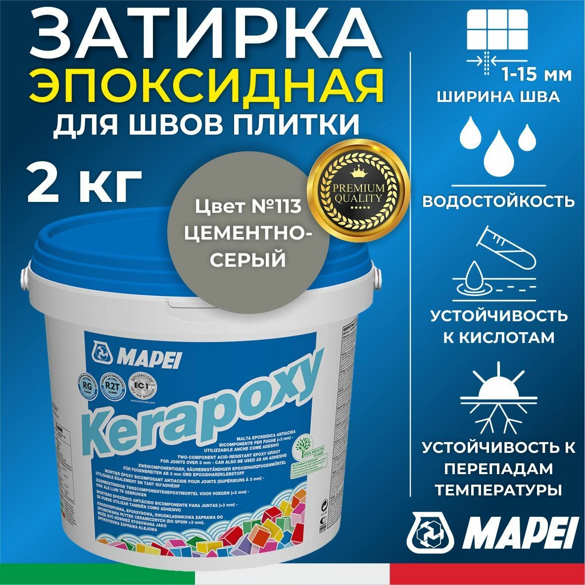 Ниже Вы можете прочитать отзывы на Эпоксидная затирка MAPEI Kerapoxy 113 Темно-серый , 2 кг, ознакомится с подробными характеристиками, посмотреть интересные обзоры и фотографии на Эпоксидная затирка MAPEI Kerapoxy 113 Темно-серый , 2 кг.