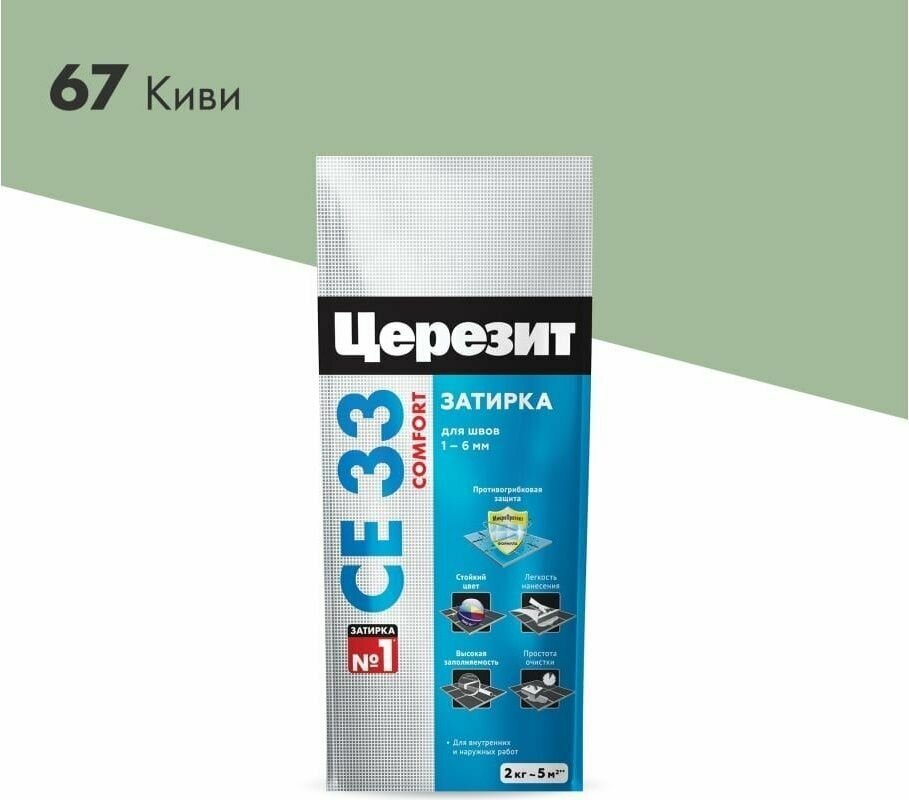 Купить Затирка для Узких Швов 2кг до 6 мм Ceresit CE 33 Comfort Киви 67 / Церезит СЕ 33 Комфорт.