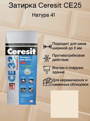 Церезит СЕ 33 затирка противогрибковая №41 натура (2кг) / CERESIT CE-33 Comfort затирка цементная для швов противогрибковая №41 натура (2кг)