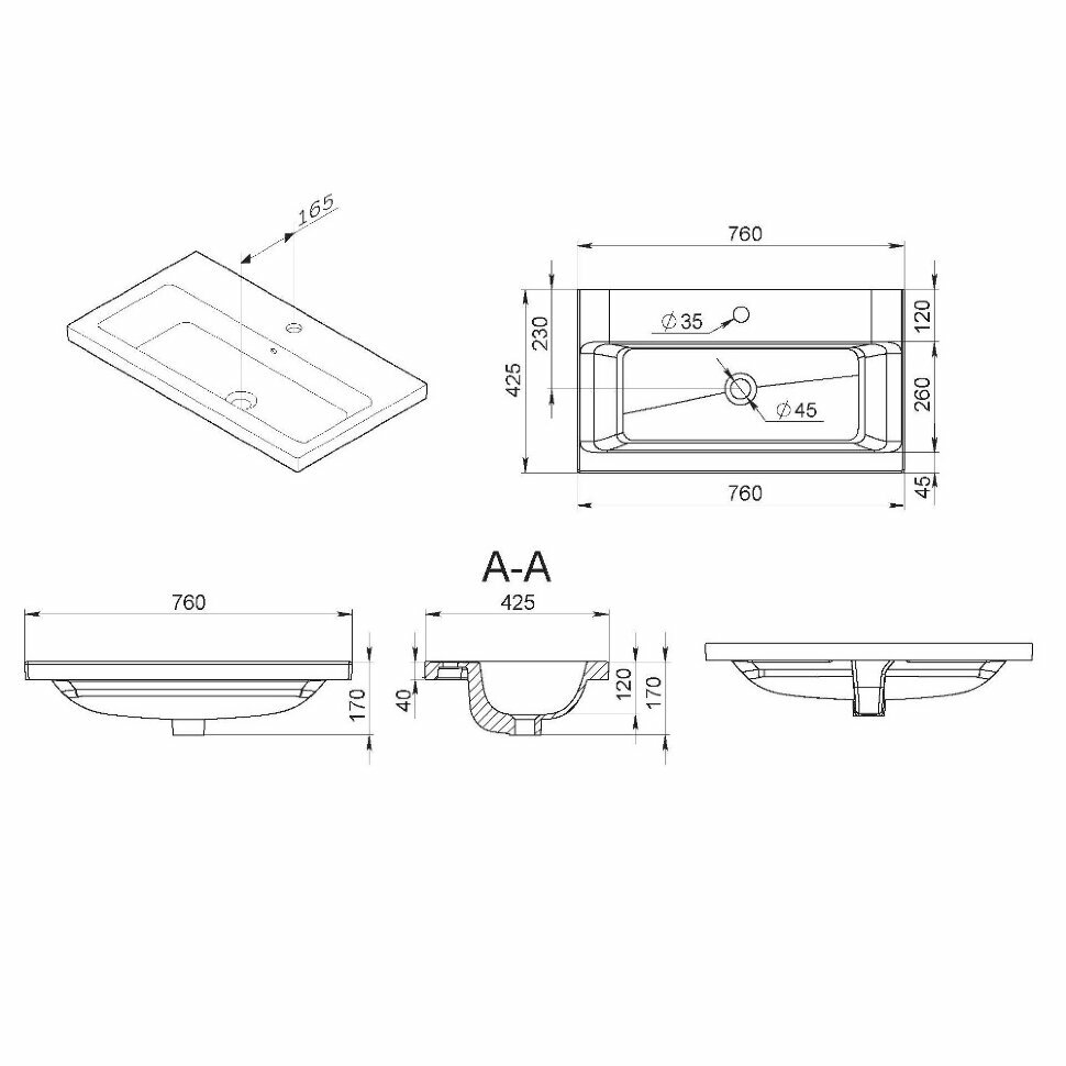 | Расположение отверстия под смеситель | в центре |