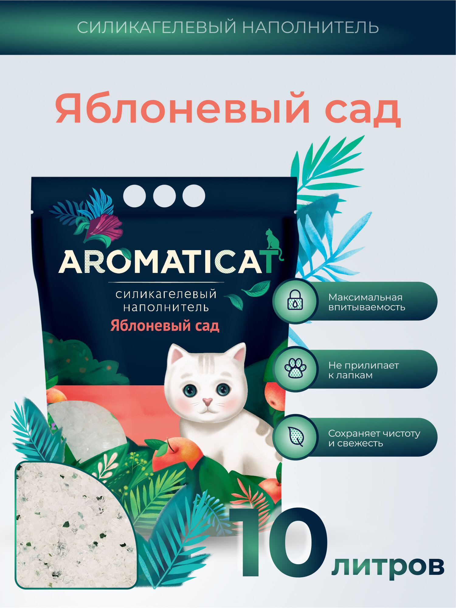 AROMATICAT яблоневый САД наполнитель силикагелевый для туалета кошек (10 л)