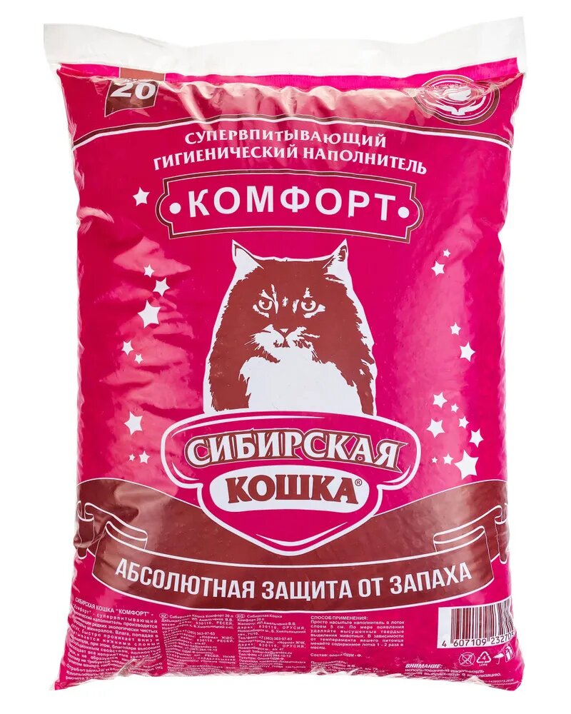 Сибирская кошка комфорт наполнитель впитывающий для туалета кошек (20 л)