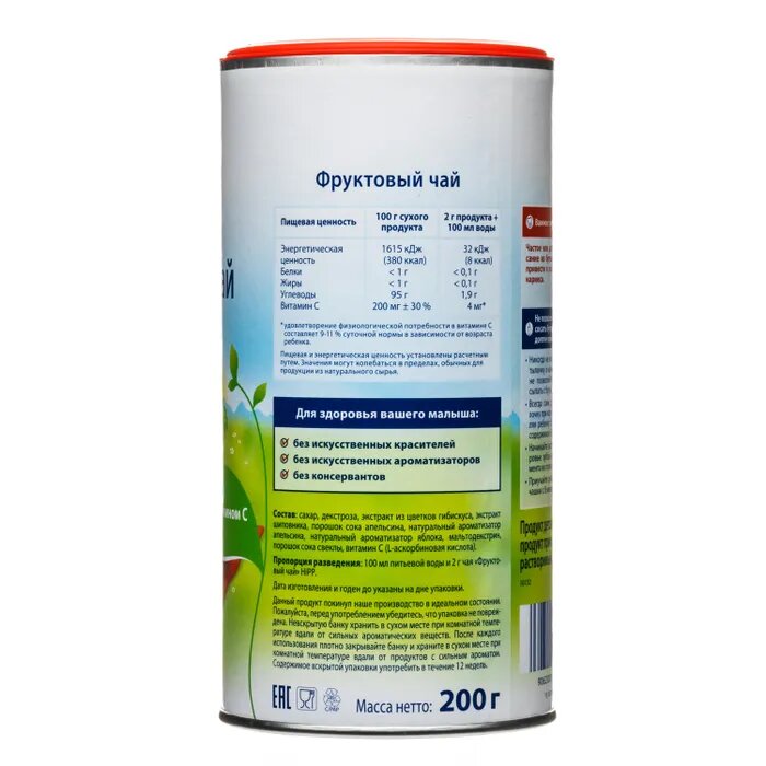 Чай HiPP Фруктовый (гранулированный), c 6 месяцев, 0.1 л, 0.2 кг