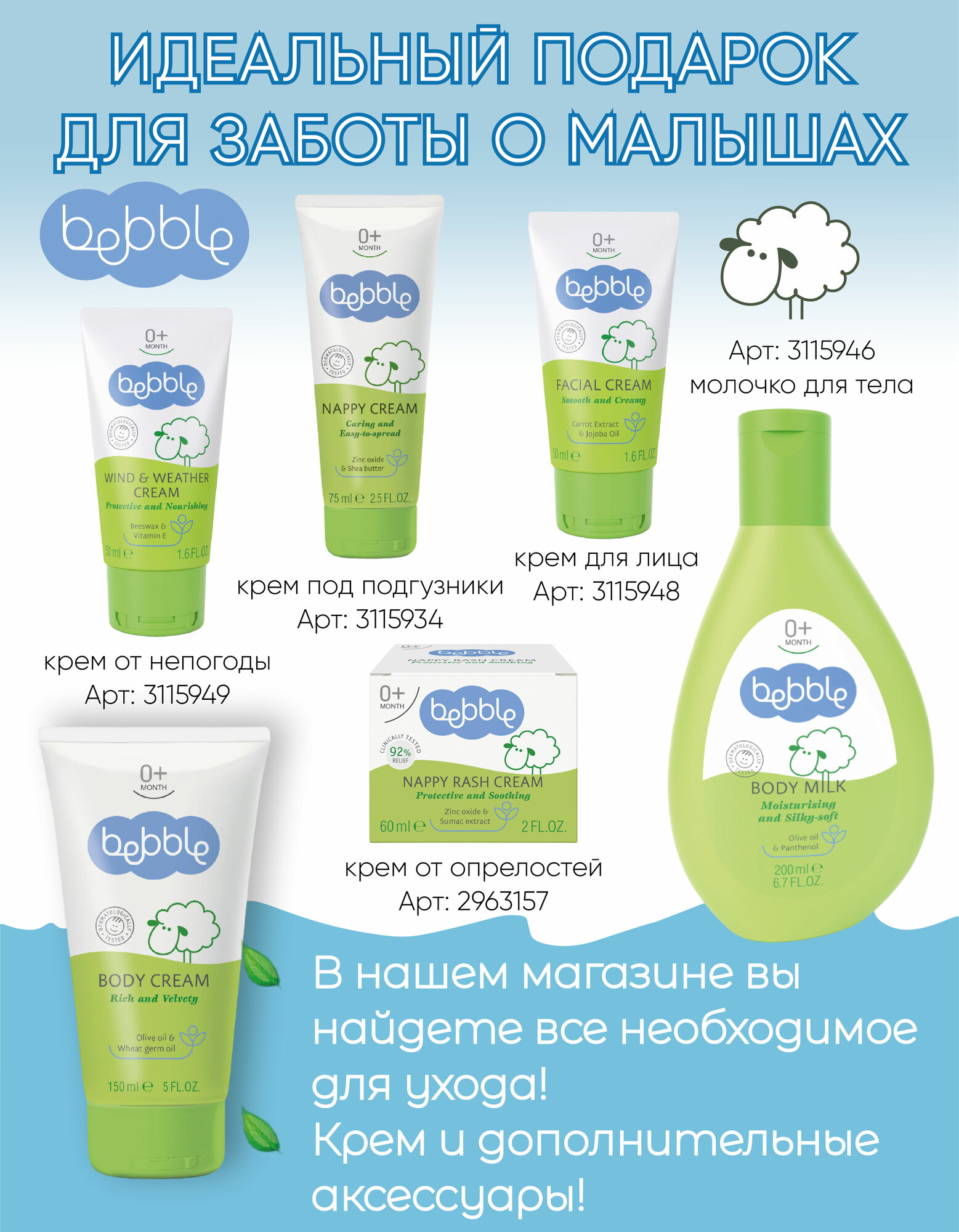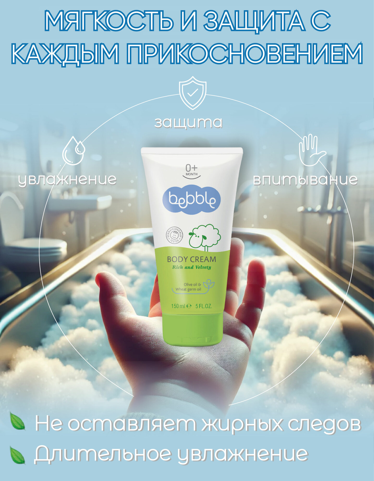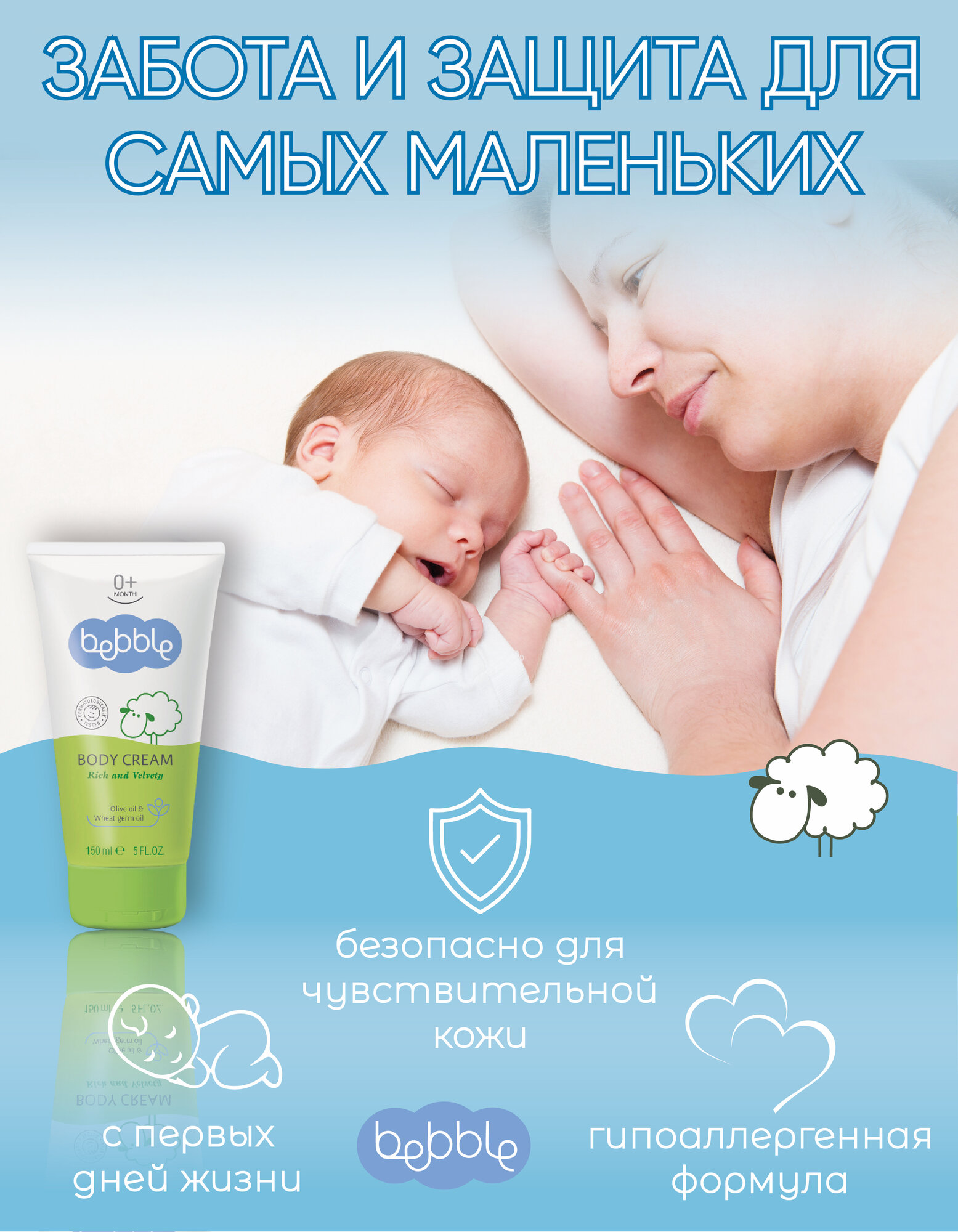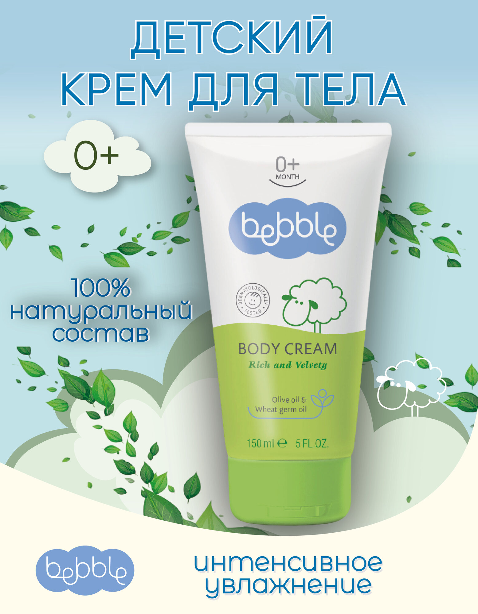 Крем детский Bebble Body Cream увлажняющий для лица и тела для новорожденных, 150 мл
