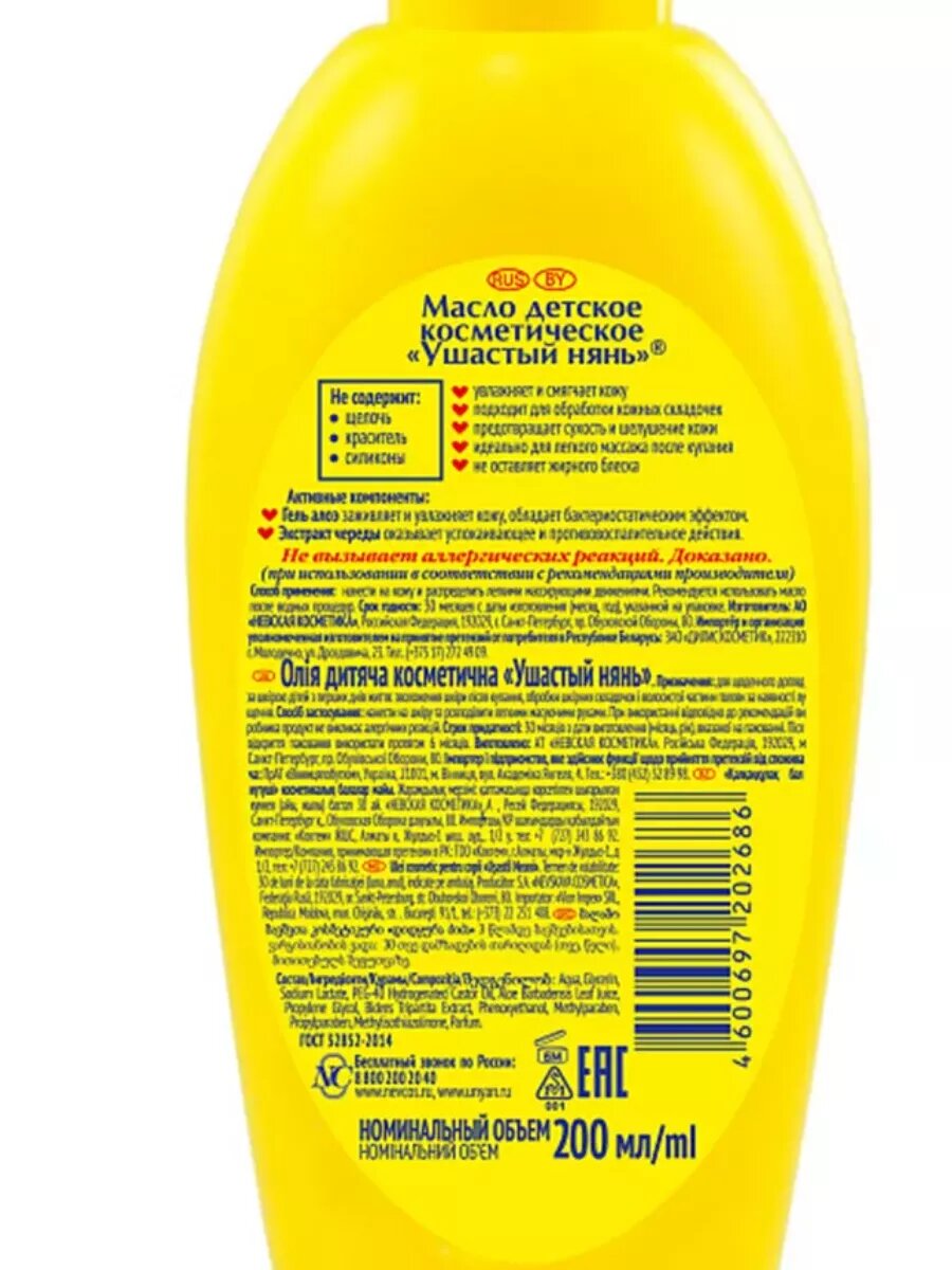 Ушастый Нянь Масло детское косметическое, 200 мл
