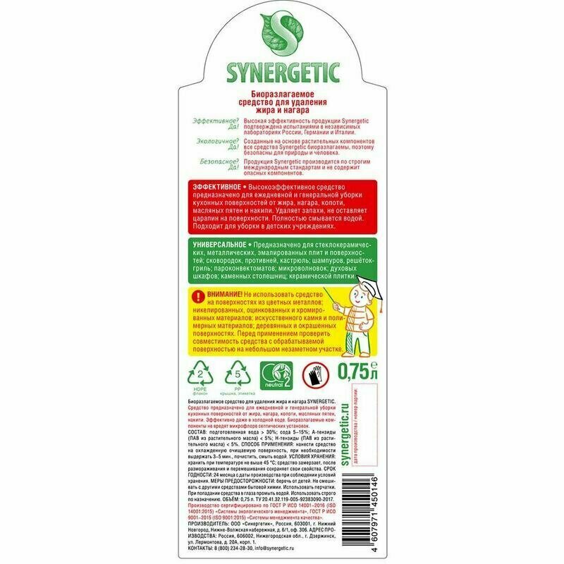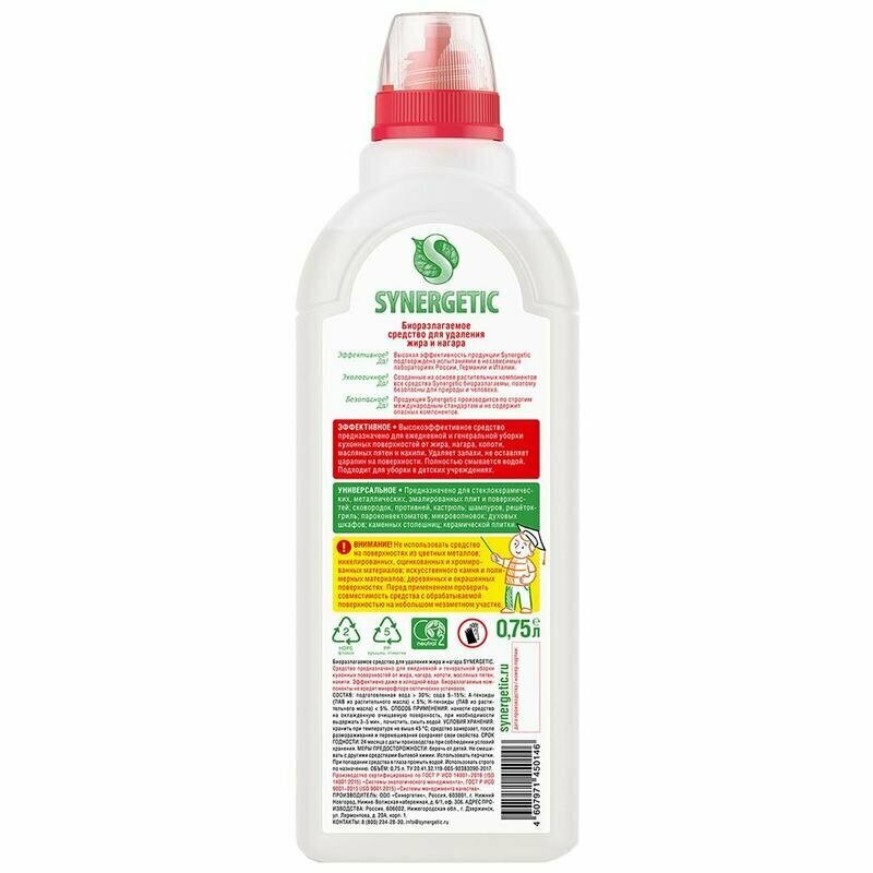 Биоразлагаемое средство для удаления жира и нагара "Synergetic" 0,75л 4744543