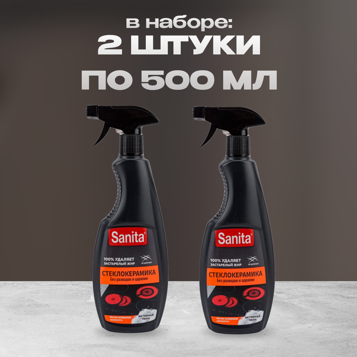 Купить Sanita Спрей чистящий для стеклокерамики Антижир, 500 мл, 2 штуки