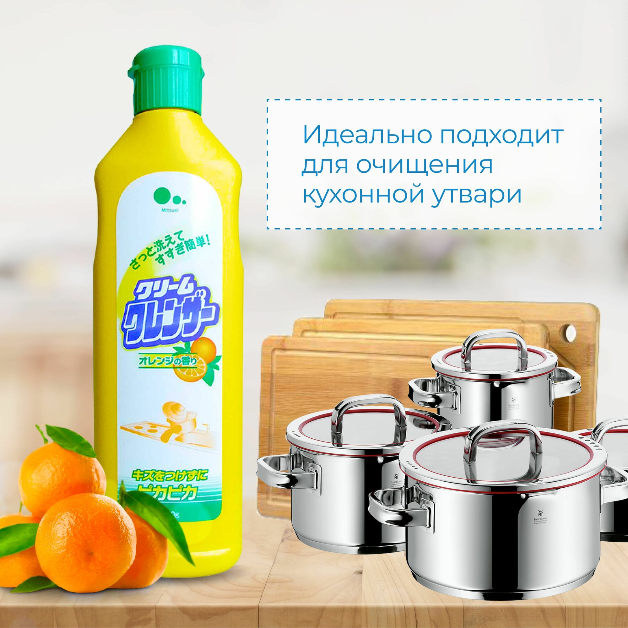 MITSUEI Крем для кухни для очищения поверхностей без царапин (с ароматом апельсина), 400 мл / Чистящее средство кремовое для раковин, газовых плит, японская бытовая химия