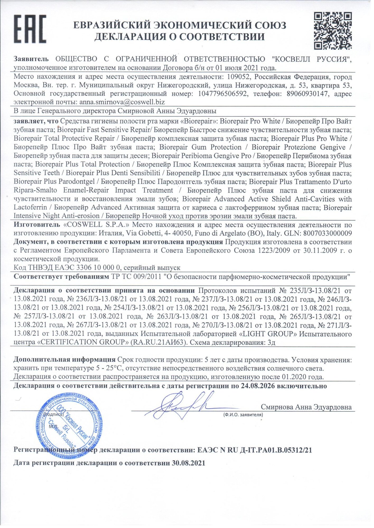Зубная паста Биорепеер Total Protective Repair Комплексная защита 75мл RDA60
