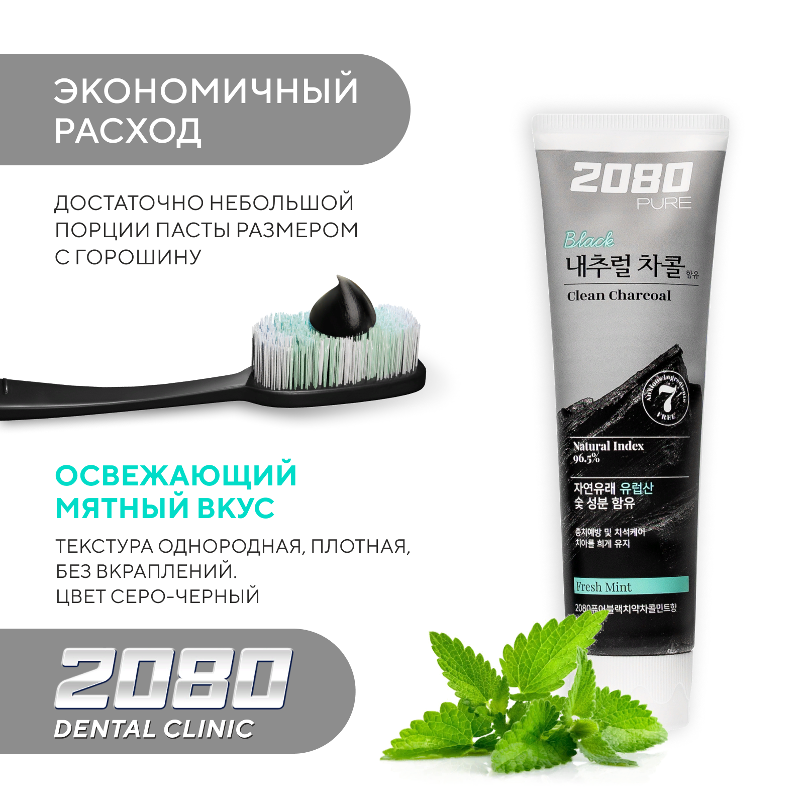 Купить Dental Clinic 2080 Набор Зубная паста отбеливающая против кариеса и зубного камня с фтором Уголь и Мята, 2 шт х 125 гр
