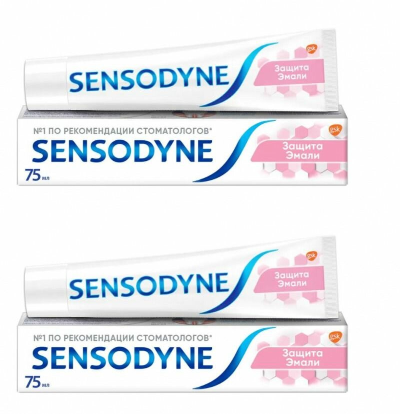 Купить Зубная паста Sensodyne Защита Эмали с фтором для поддержания здоровья десен, защиты от кариеса и удаления бактериального зубного налета, 75мл*2шт