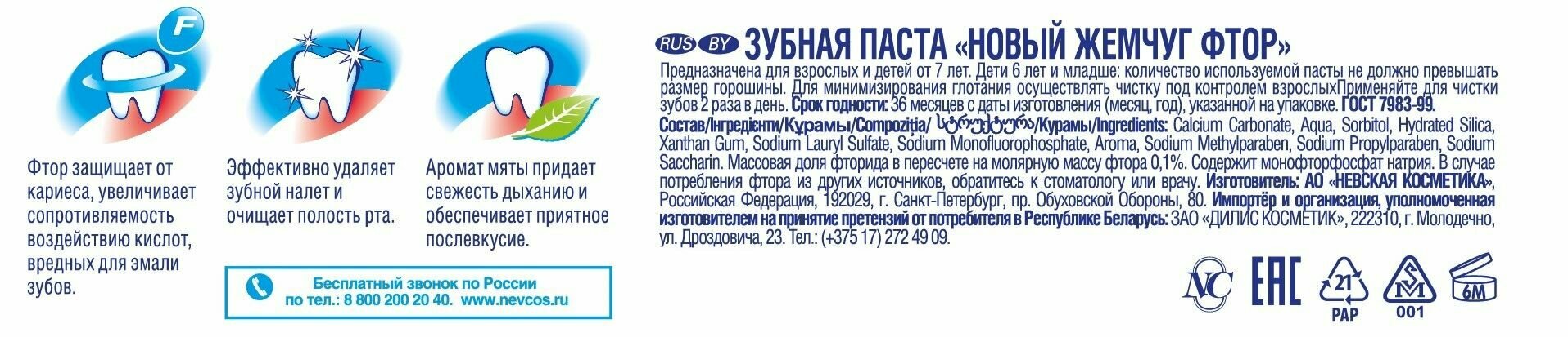 Невская Косметика Новый Жемчуг Паста зубная Фтор, 100 мл