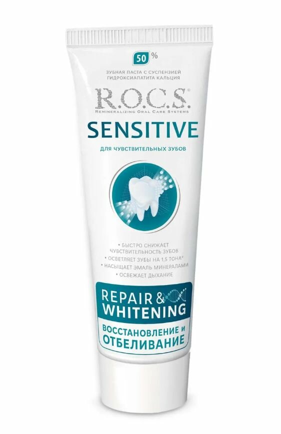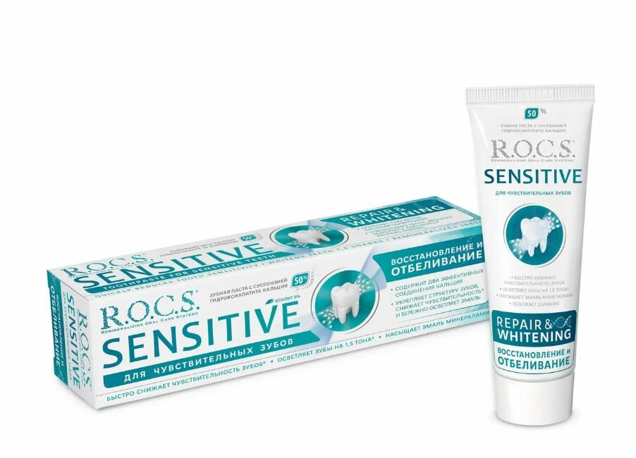 Купить R.O.C.S. Паста зубная Sensitive Восстановление и отбеливание, 94 г, 3 шт.