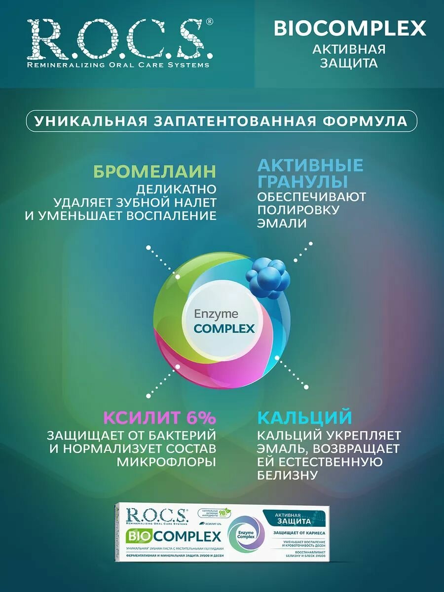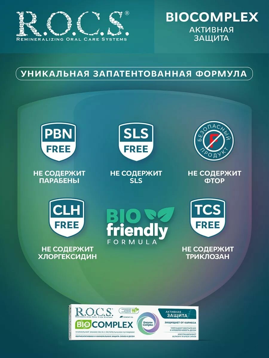 СохранитьR.O.C.S. Паста зубная Biocomplex Активная защита, 94 г, 2 шт. интересное: