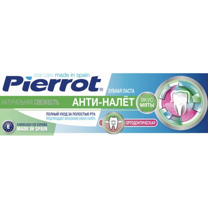 Зубная паста Pierrot Anti plaque Natural Freshness ортодонтическая, 75 мл интересное: