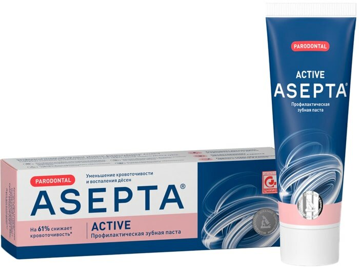 Профессиональная зубная паста Асепта от кровоточивости и воспаления десен, от зубного налёта, без фтора,75мл