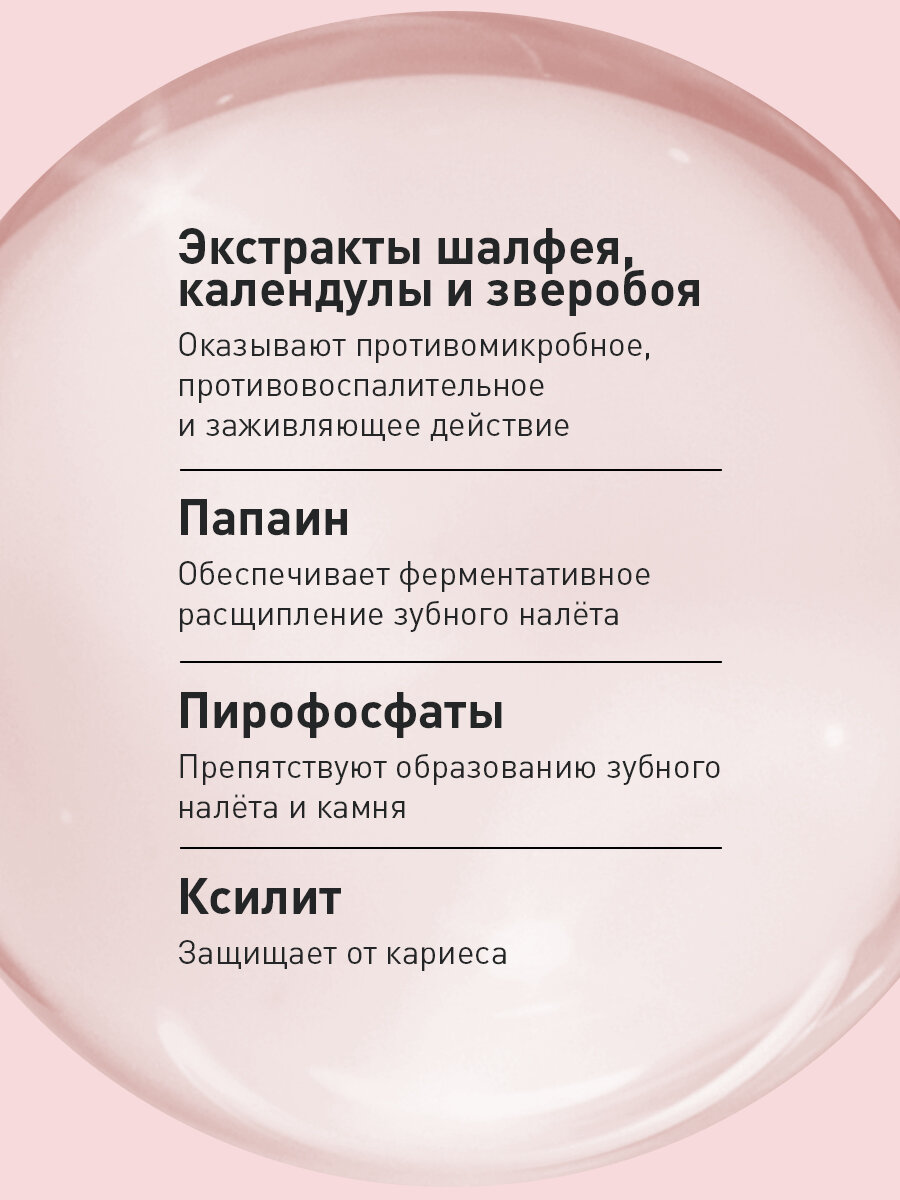 Уменьшает налет, кровоточивость и неприятный запах. |
