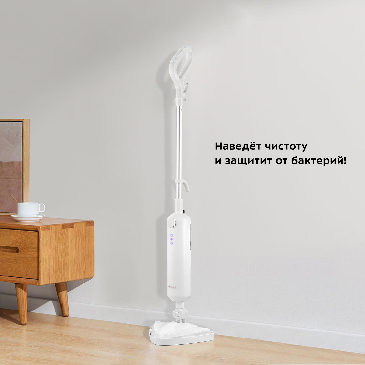 Паровая швабра KITFORT KT-1004-4, 1500 Вт, 1 бар, объем 0,35 л, белая/фиолетовая