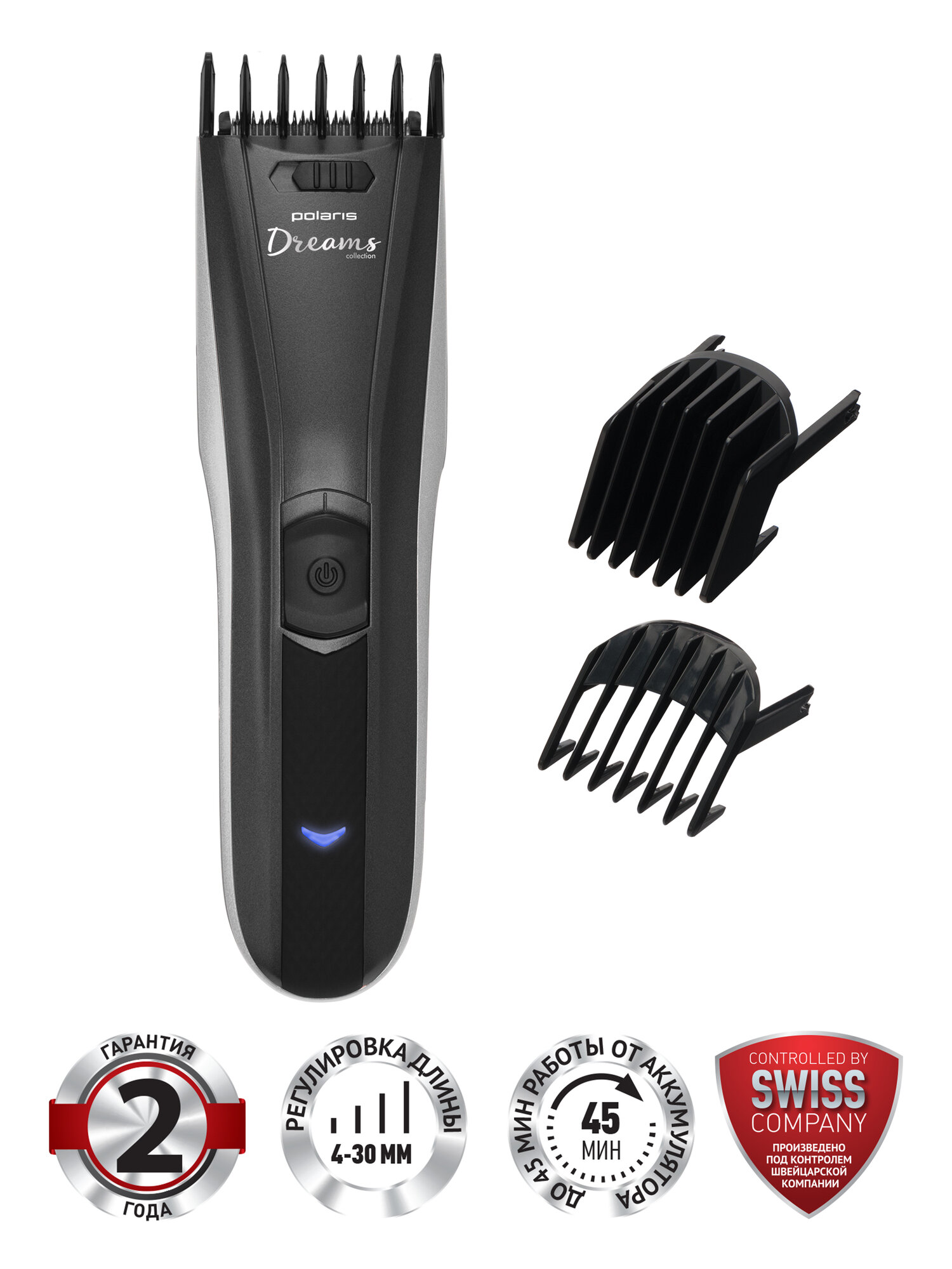 Машинка для стрижки Polaris PHC 0512RC черный/серебристый (насадок в компл:2шт) .