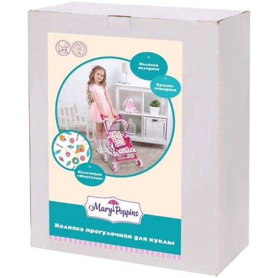 Коляска прогулочная для куклы "Фантазия" малиновая Mary Poppins 67323