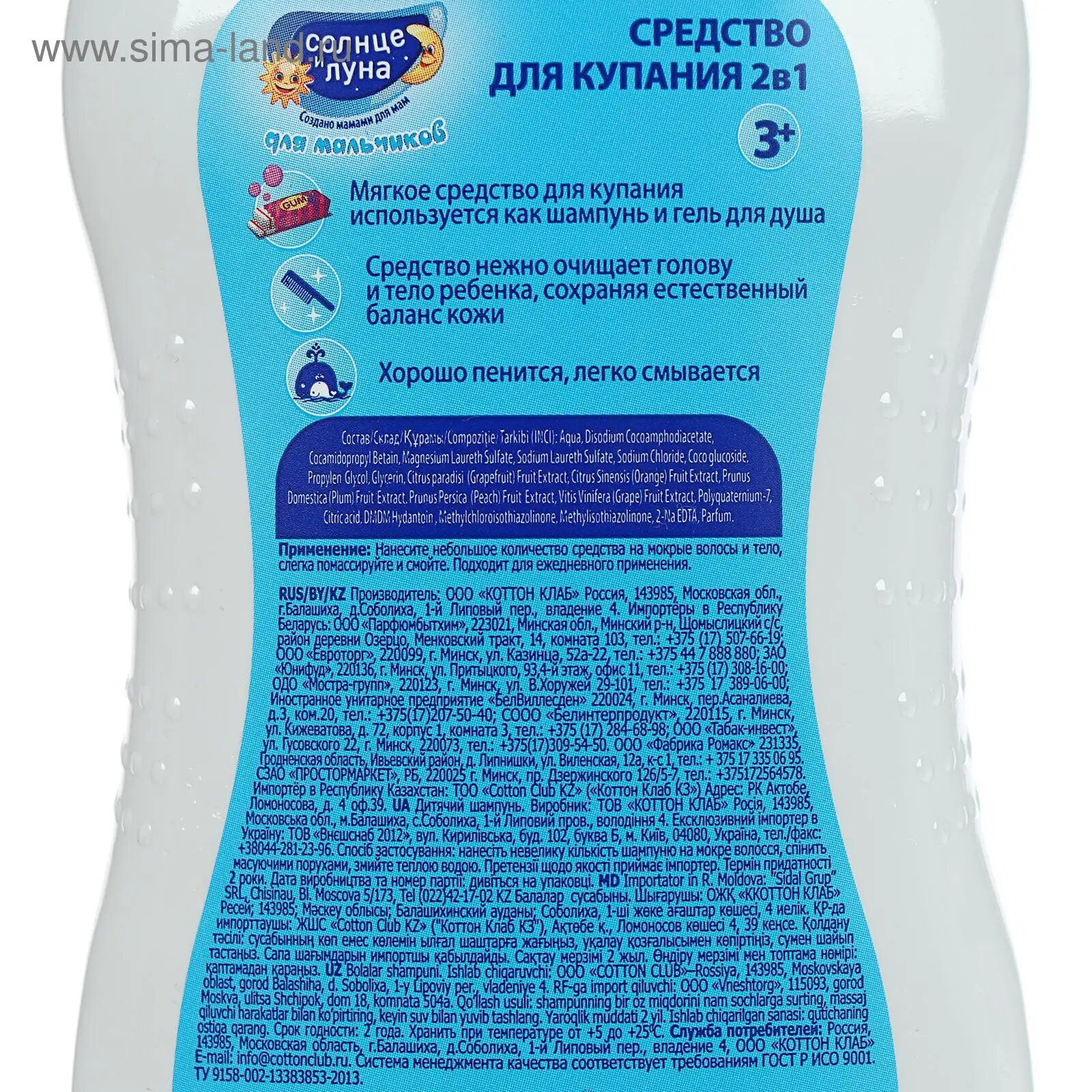 Солнце и Луна Средство для купания 2в1 для мальчиков "Солнце и Луна" с ароматом жвачки, 200 мл