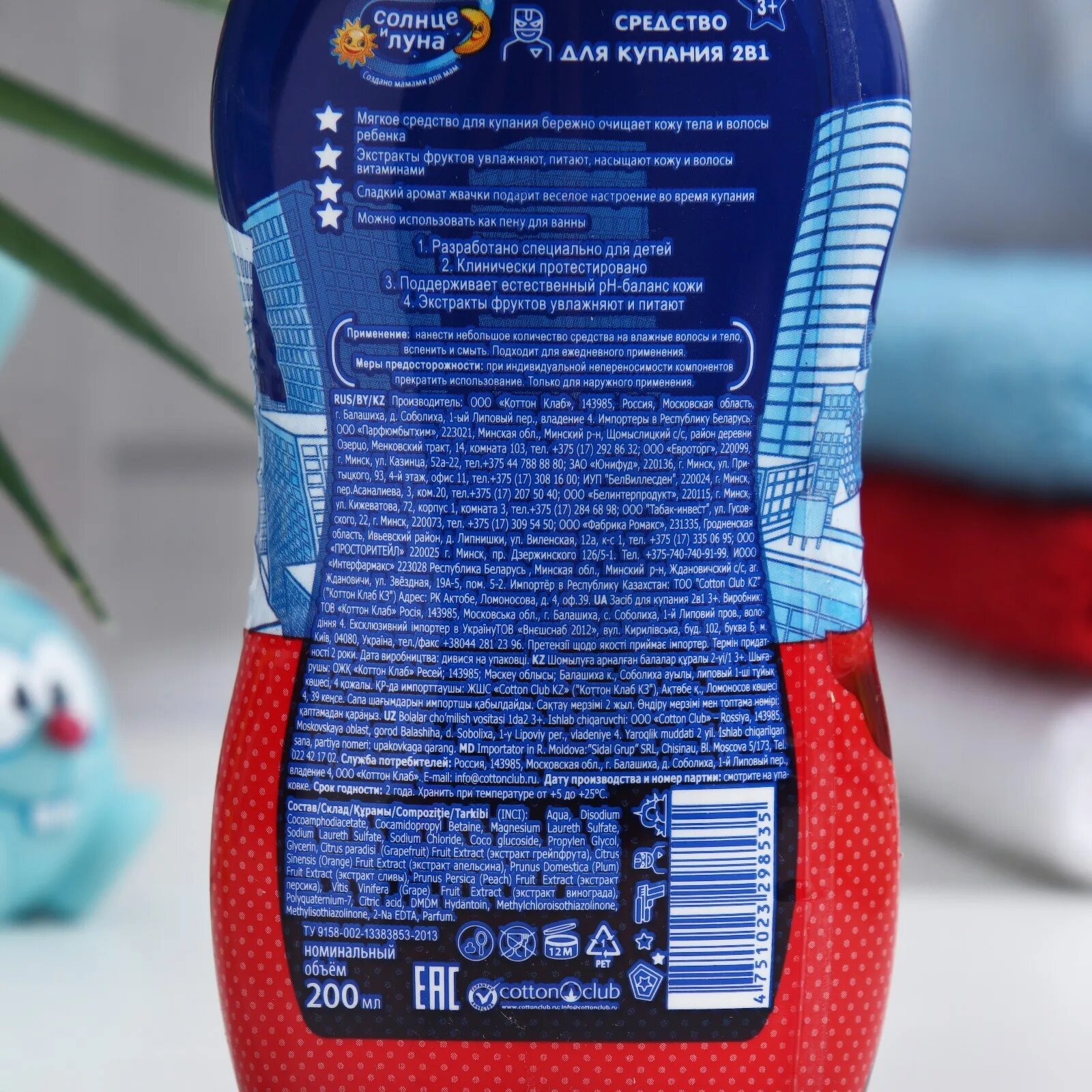 Солнце и Луна Средство для купания 2 в 1 Солнце и луна. Супермен, для мальчиков, с запахом жвачки, 200 мл