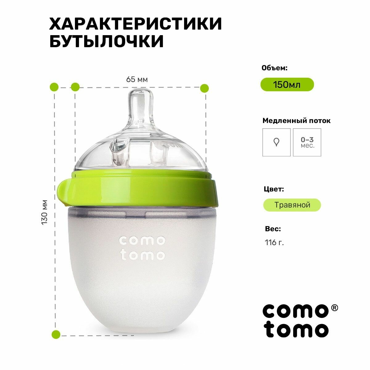 Бутылочка Comotomo для кормления 150мл зеленый 150G-EN