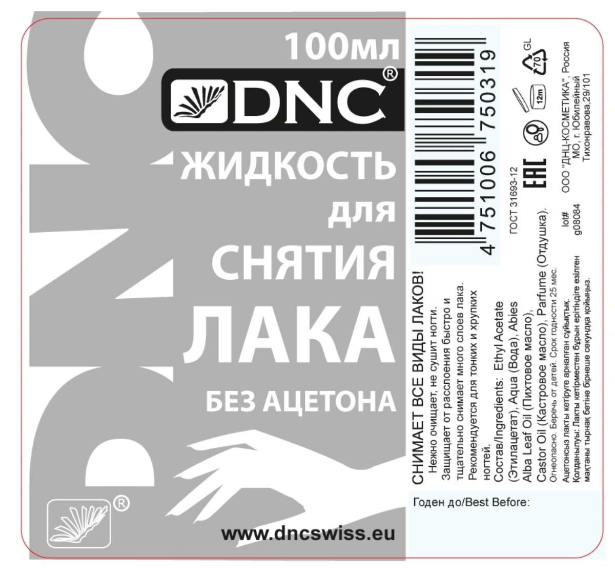 Жидкость для снятия лака DNC без ацетона 100мл, 100 мл 1 шт