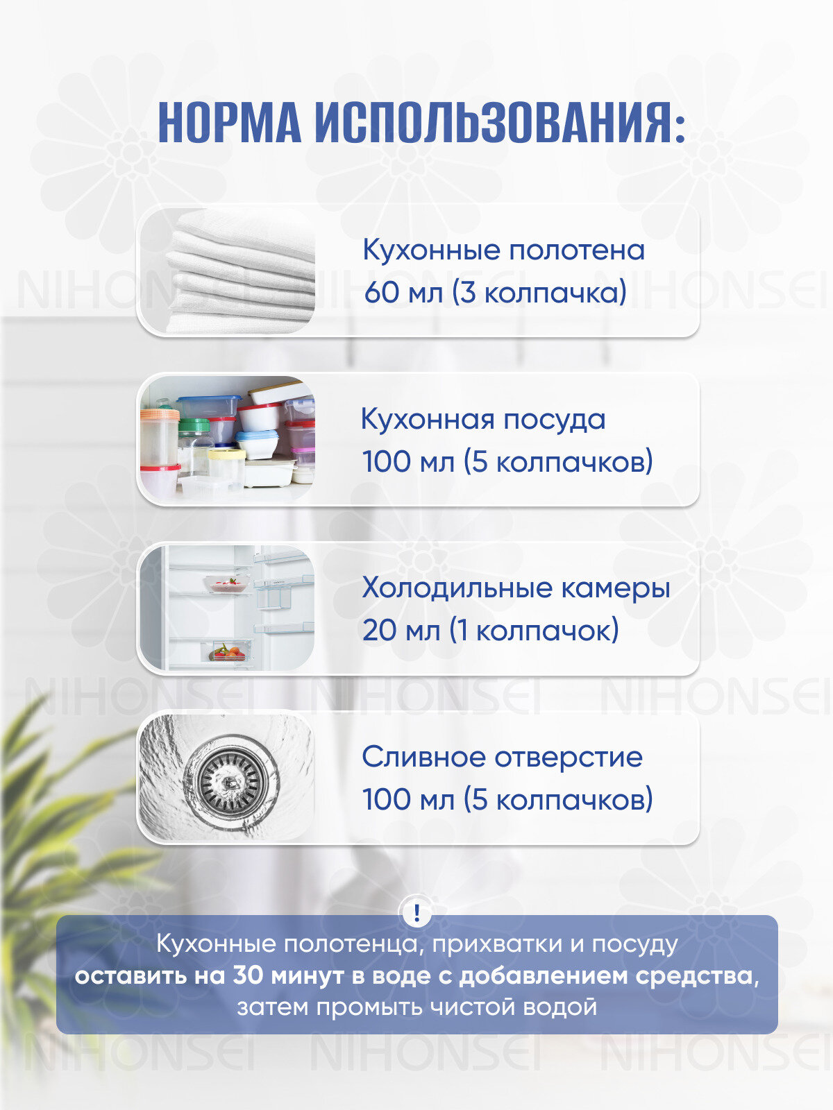 Кухонное моющее и отбеливающее средство универсальное, концентрированное 1500 мл, Mitsuei / Средство против неприятного запаха / Отбеливатель для кухонных полотенец, кухонная посуда