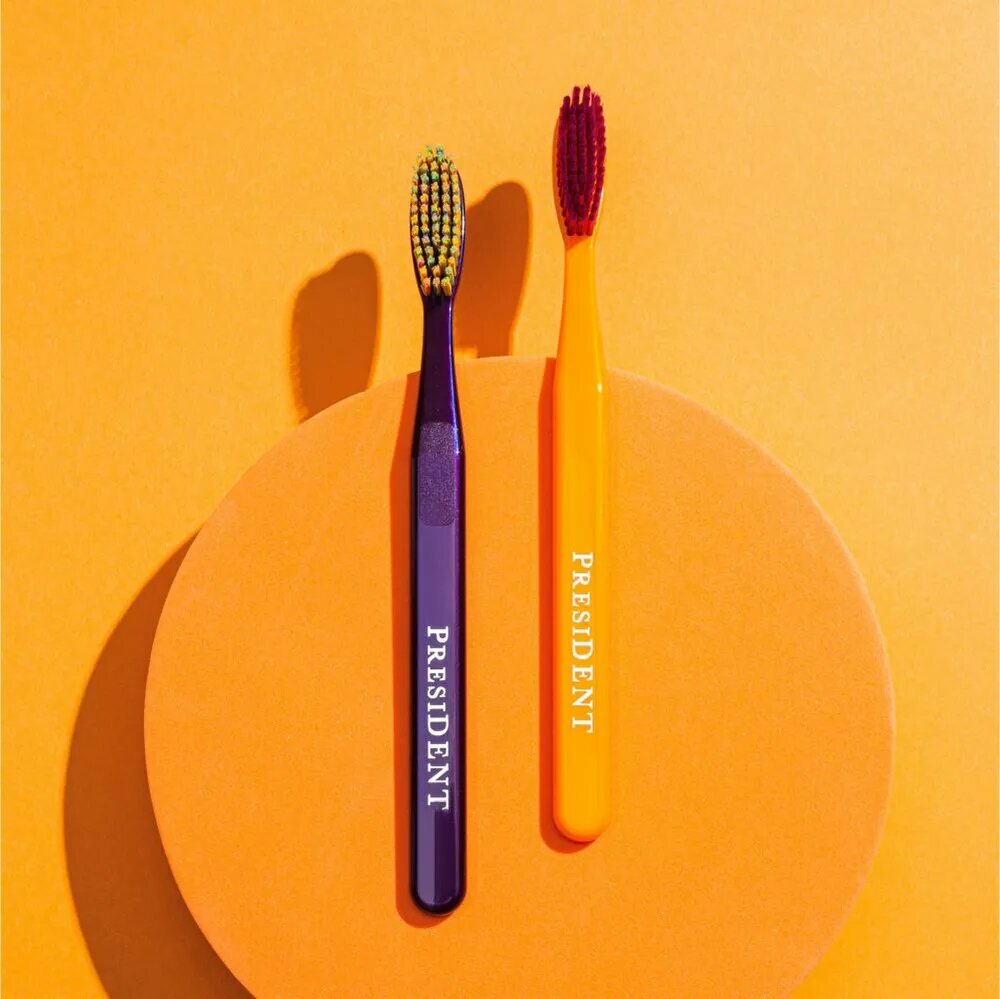 Набор: зубная щетка средняя PRESIDENT Exclusive 6 МИЛ 2 шт цвет в ассортименте