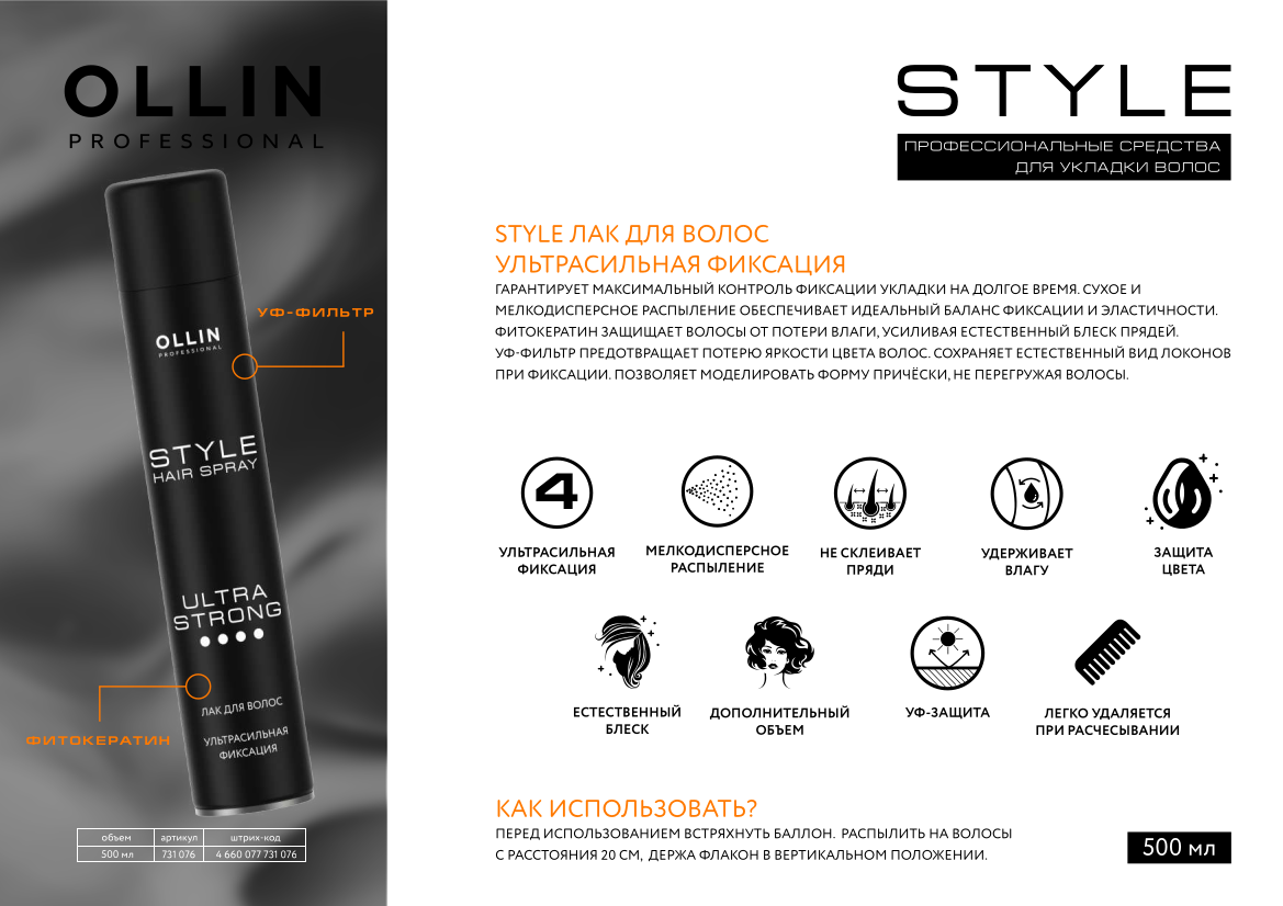 Купить OLLIN / STYLE – Лак для волос ультрасильной фиксации, 500мл