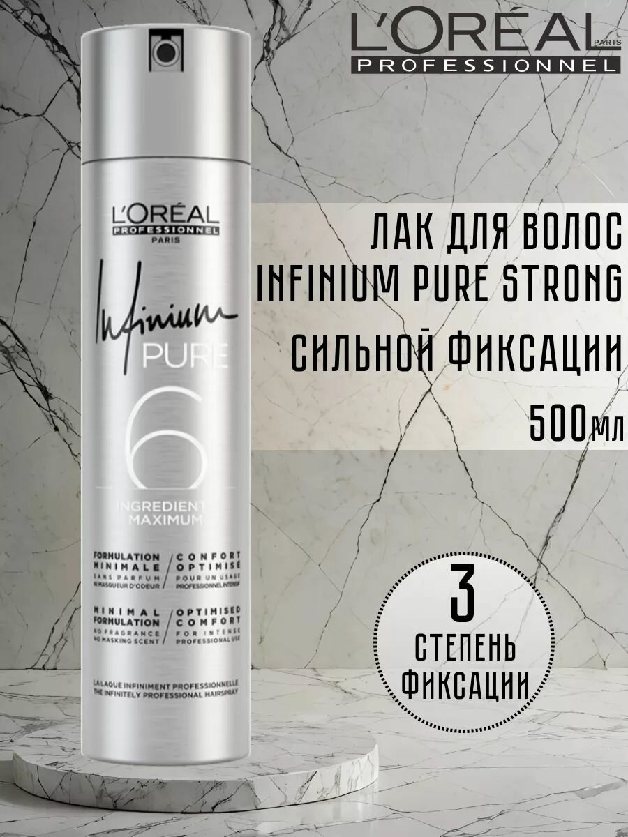 L'Oreal Professionnel Лак для волос Infinium pure Strong, сильная фиксация, 500 мл