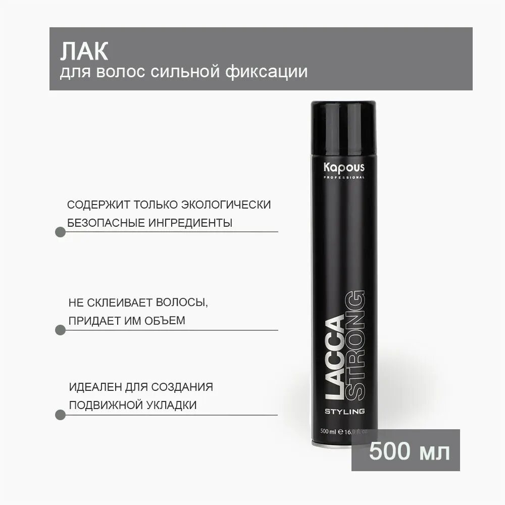 Kapous Lacca Strong - Лак аэрозольный для волос сильной фиксации черный флакон, 500 мл