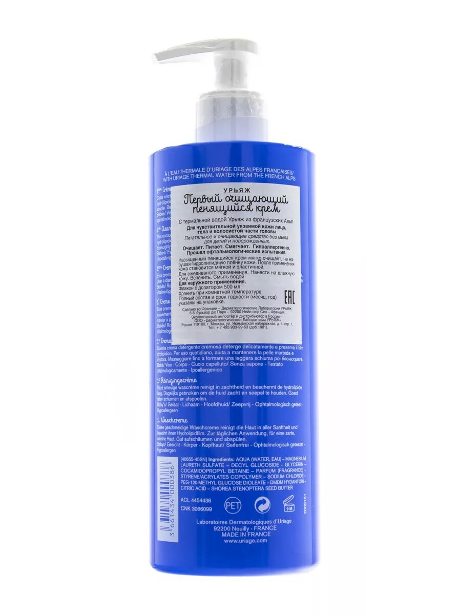 URIAGE первый Очищающий пенящийся крем для детей и новорожденных, 500 мл