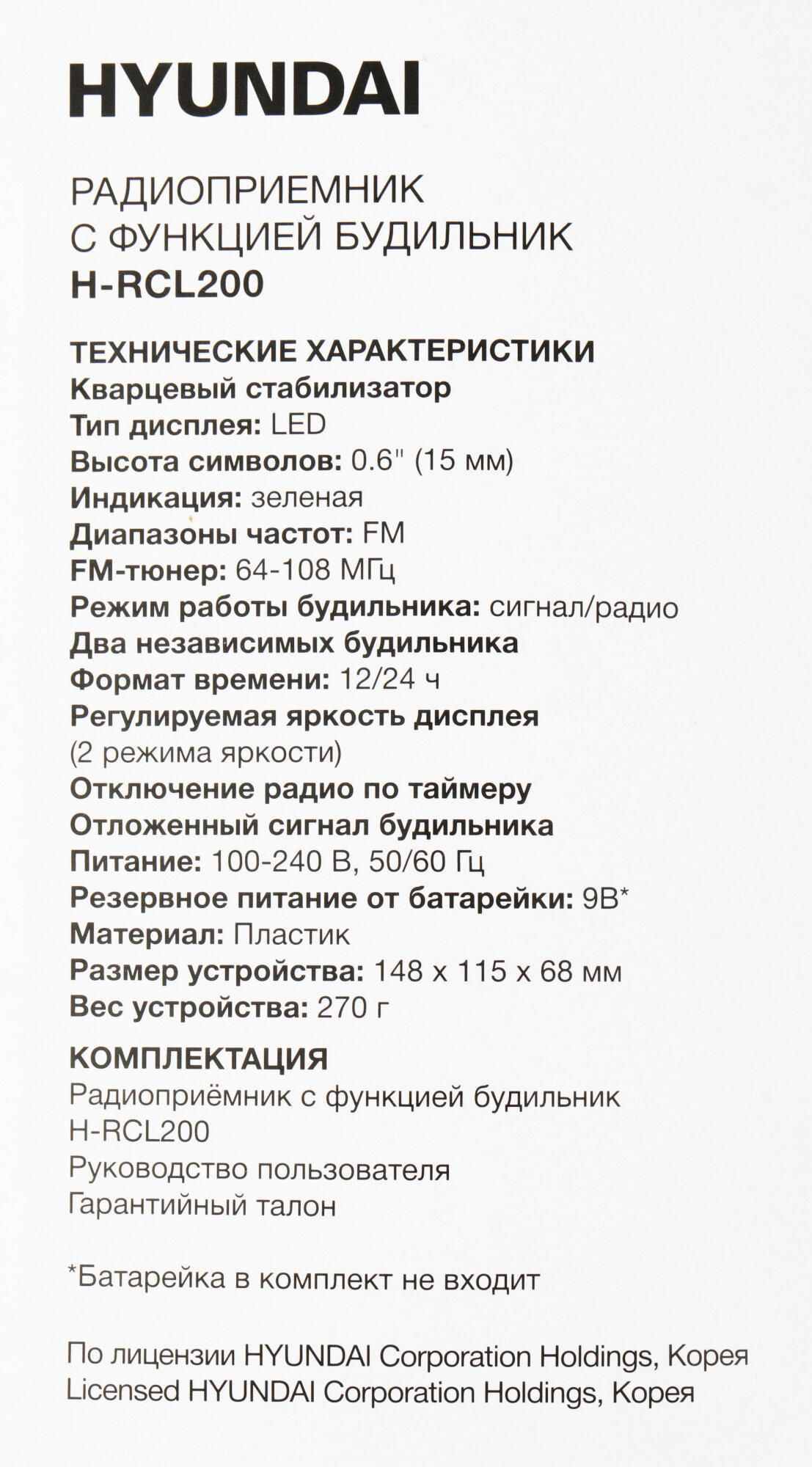 Ниже Вы можете прочитать отзывы на Часы электронные настольные с радио FM Hyundai H-RCL200, LED-дисплей, подсветка зеленая, радиобудильник, часы с будильником, от сети 220В, с большими цифрами, ознакомится с подробными характеристиками, посмотреть интересные обзоры и фотографии на Часы электронные настольные с радио FM Hyundai H-RCL200, LED-дисплей, подсветка зеленая, радиобудильник, часы с будильником, от сети 220В, с большими цифрами.