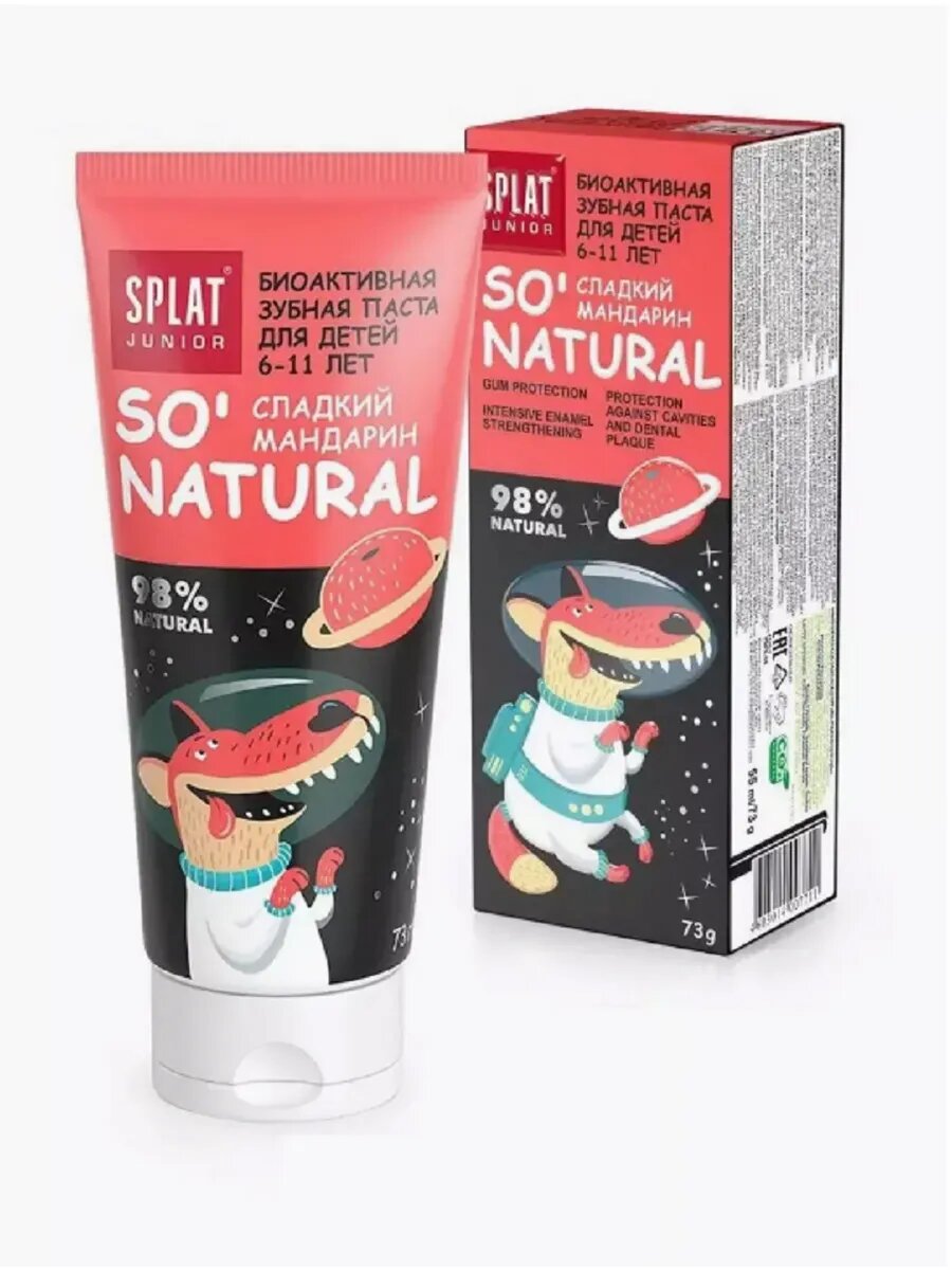 Зубная паста детская Splat, Junior So Natural, Сладкий мандарин, 73 гр