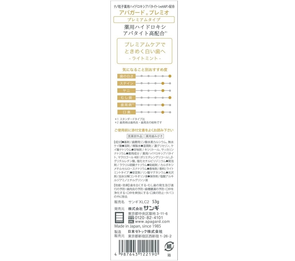 Премиальная зубная паста для укрепления, осветления и увлажнения зубов Sangi Apagard Premio, 50ml, Япония