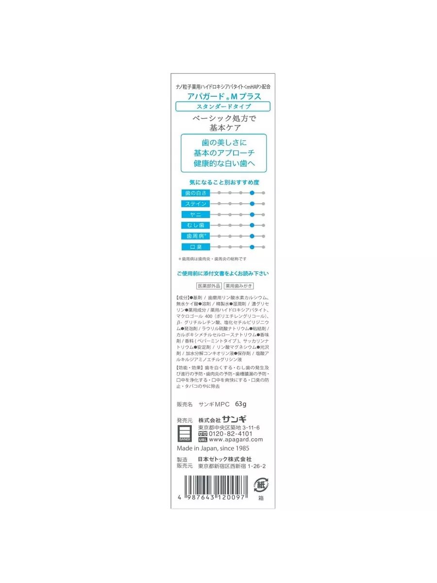 Зубная паста Apagard M-Plus для всей семьи, Япония, 130 гр.
