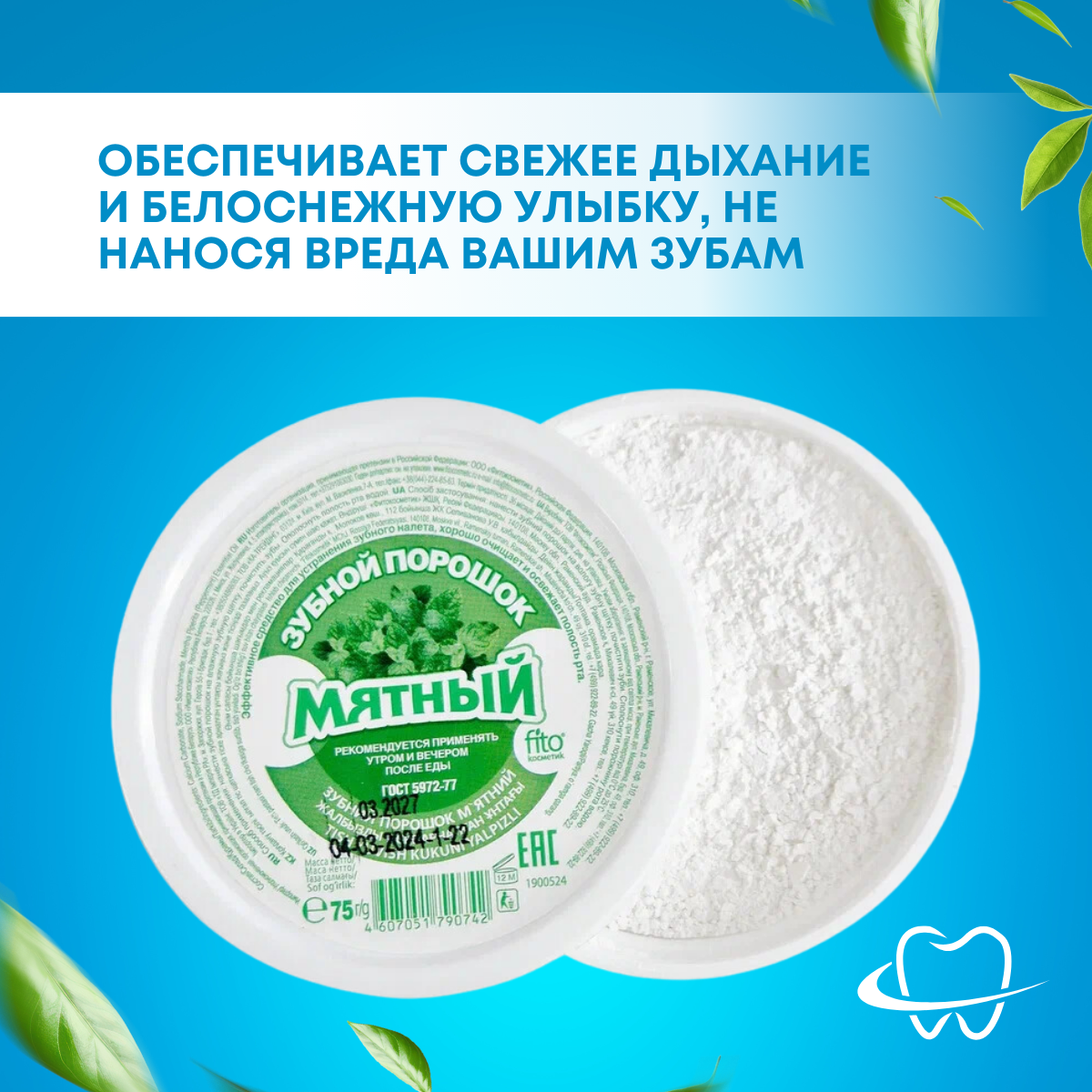Зубной порошок Fito косметик Семейный, клубника и мята, 10 мл