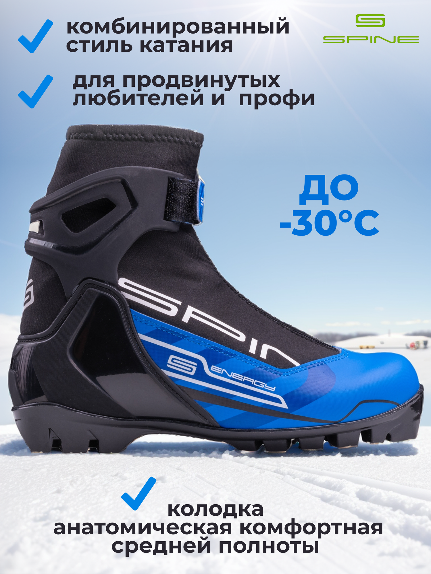 Лыжные ботинки SPINE NNN Energy (258) (черный/синий) (37)