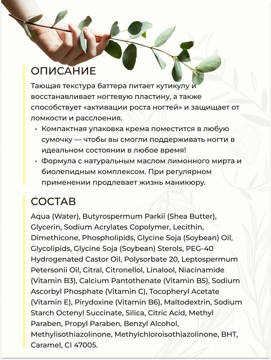 СохранитьЛимонное масло-баттер (butter), Активатор роста ногтей, питает кутикулу, 20 мл интересное: