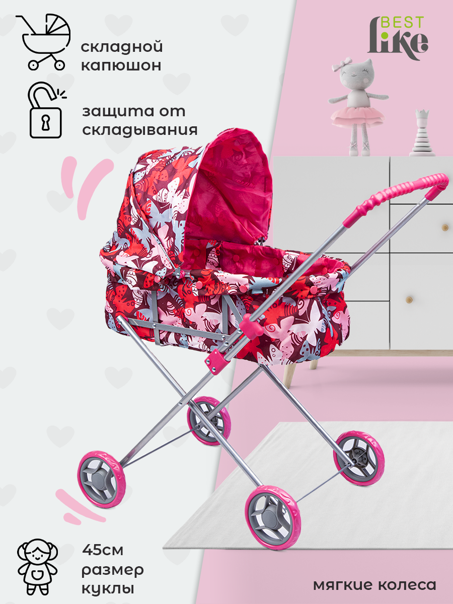 Коляска-люлька для кукол Melobo "Бабочки", 9308, складная, для кукол до 45см интересное: