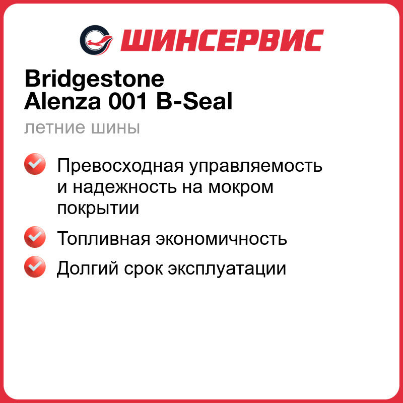 Купить Летние шины 18/235/55 Bridgestone Alenza 001 100V Sealant