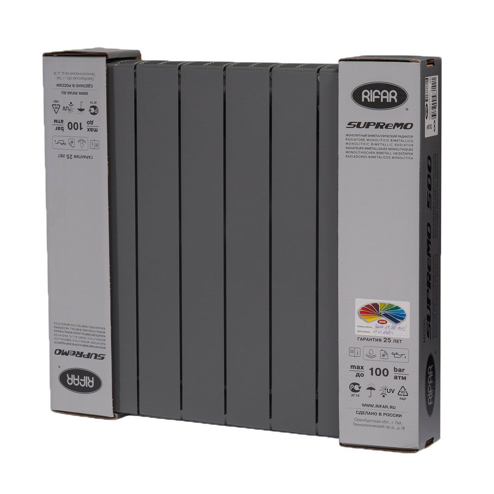 Радиатор отопления RIFAR SUPReMO биметаллический, 500 х 6 секций, боковое подключение, цвет Титан, R S50063/47012