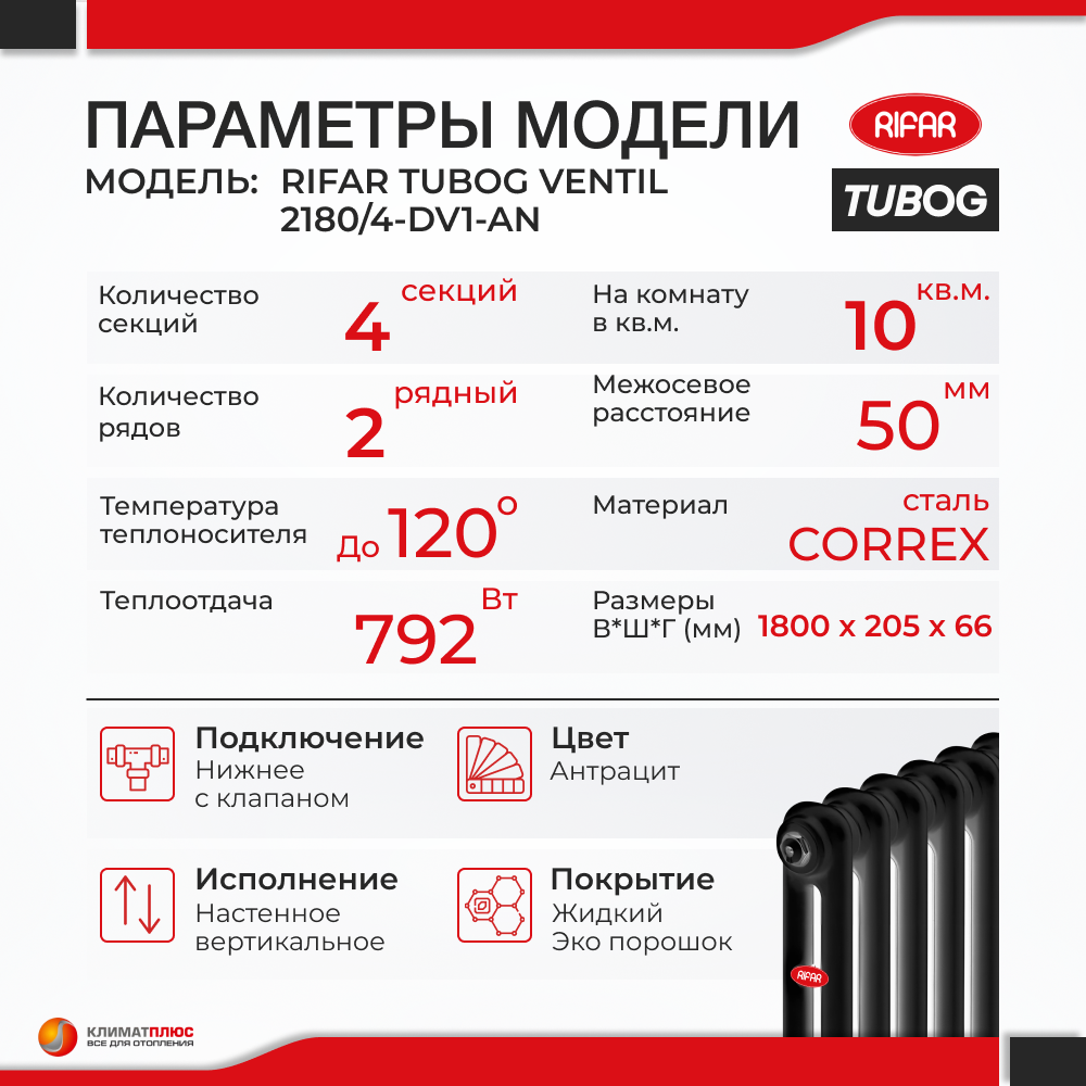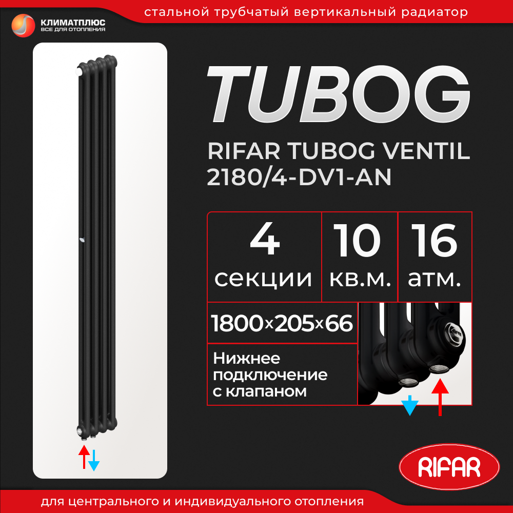 Ниже Вы можете прочитать отзывы на Радиатор Rifar Tubog Ventil 2180 DV1 Антрацит 4 секц. нижн., трубчатый, ознакомится с подробными характеристиками, посмотреть интересные обзоры и фотографии на Радиатор Rifar Tubog Ventil 2180 DV1 Антрацит 4 секц. нижн., трубчатый.