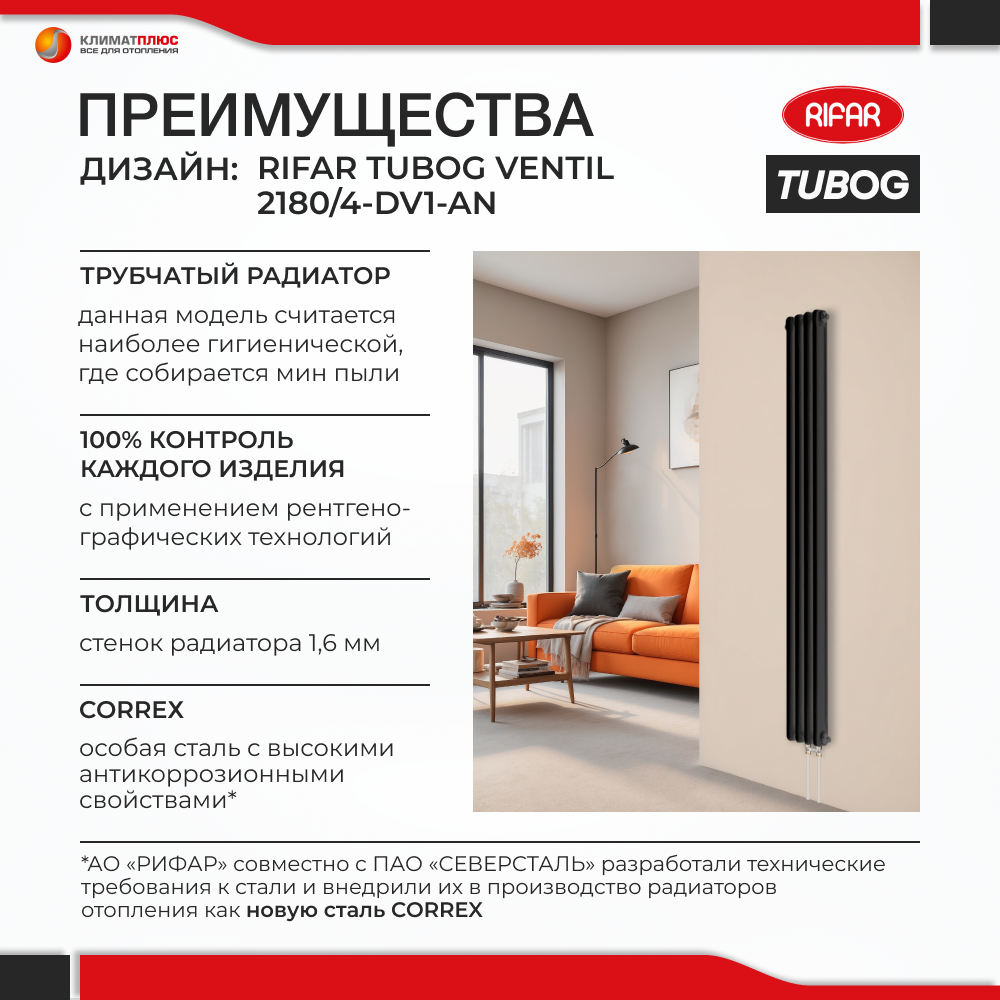 СохранитьРадиатор Rifar Tubog Ventil 2180 DV1 Антрацит 4 секц. нижн., трубчатый интересное:
