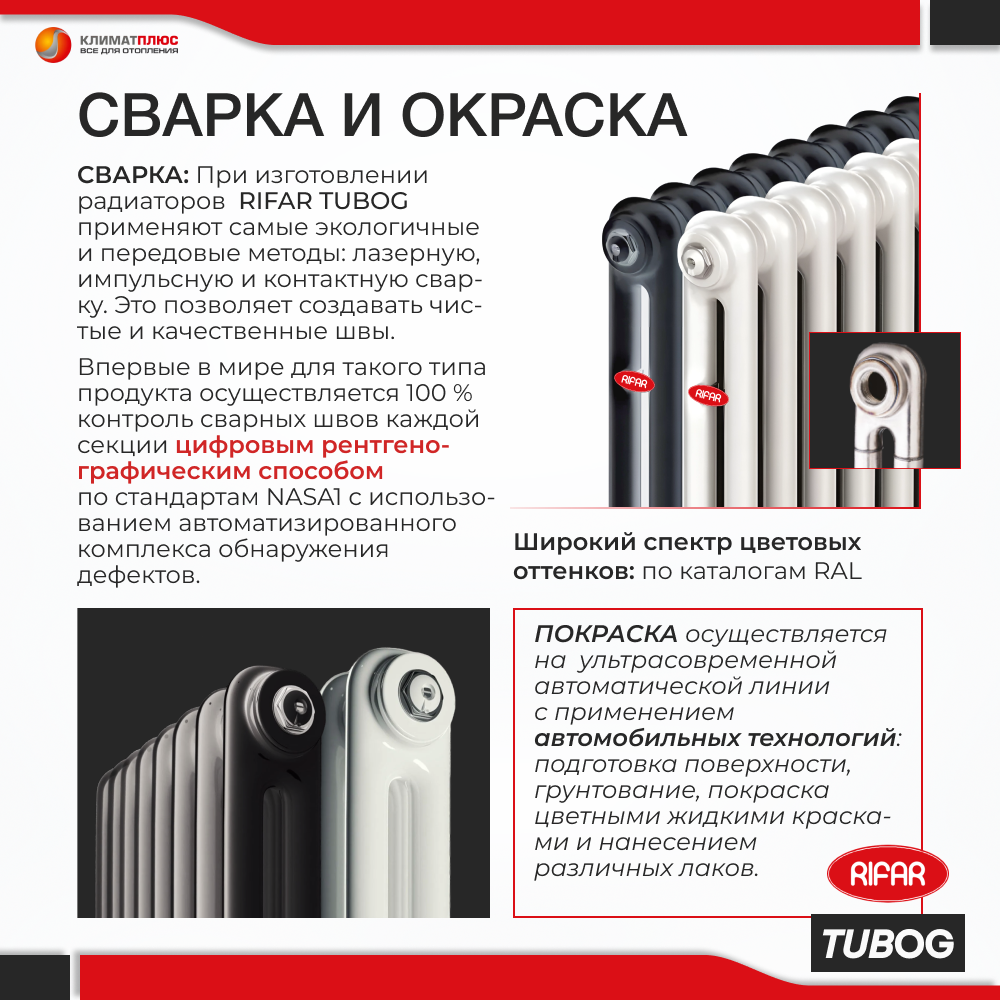 Радиатор отопления Rifar Tubog 2180 / 6 секций, боковое подключение, вертикальный, трубчатый, цвет белый Ral 9016