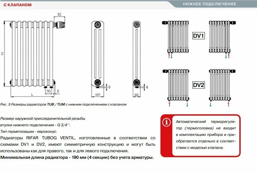 RIFAR TUBOG 2180/12 радиатор трубчатый нижнее подключение DV1 (белый RAL 9016)