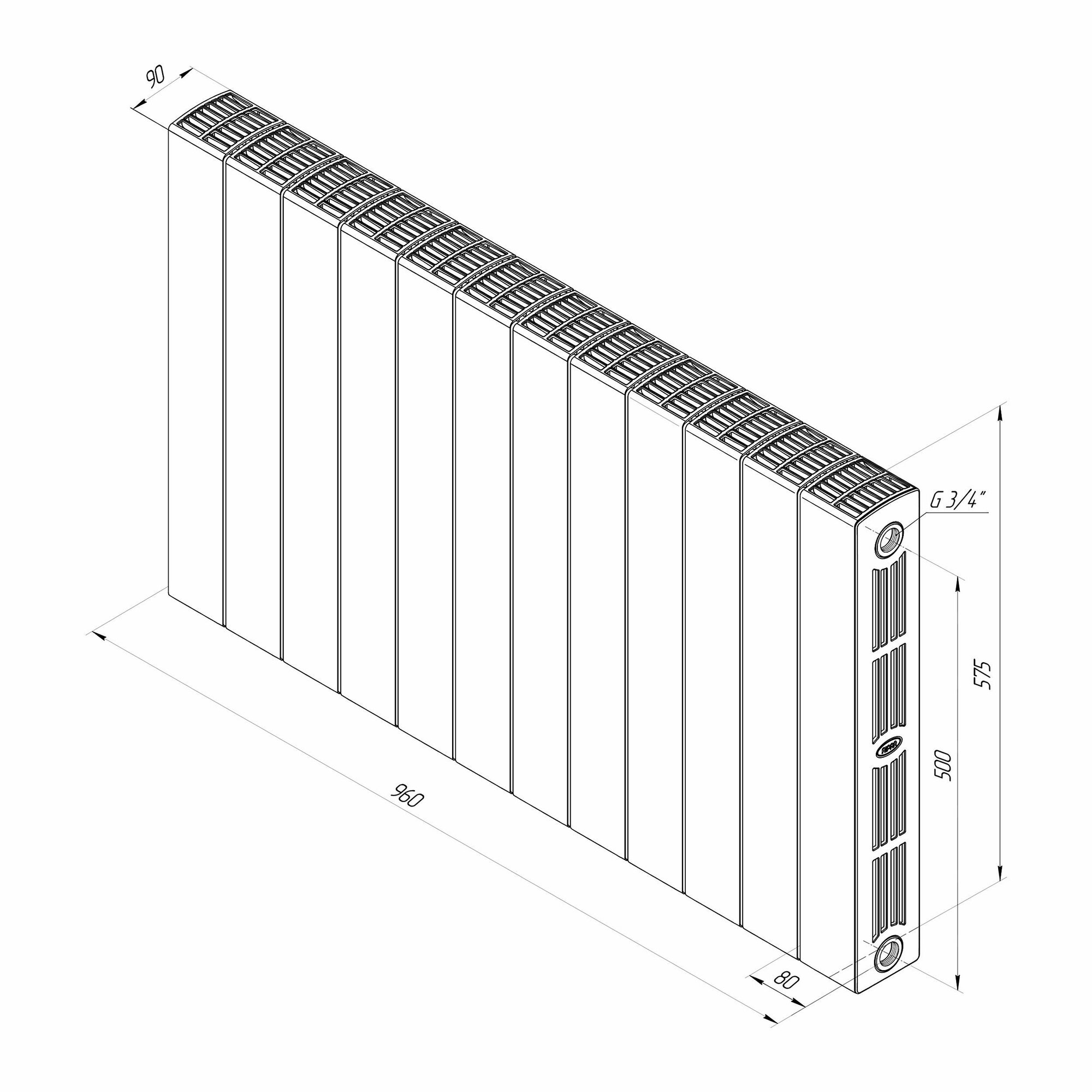 Радиатор биметаллический RIFAR SUPReMO 500 10 секц. бок.